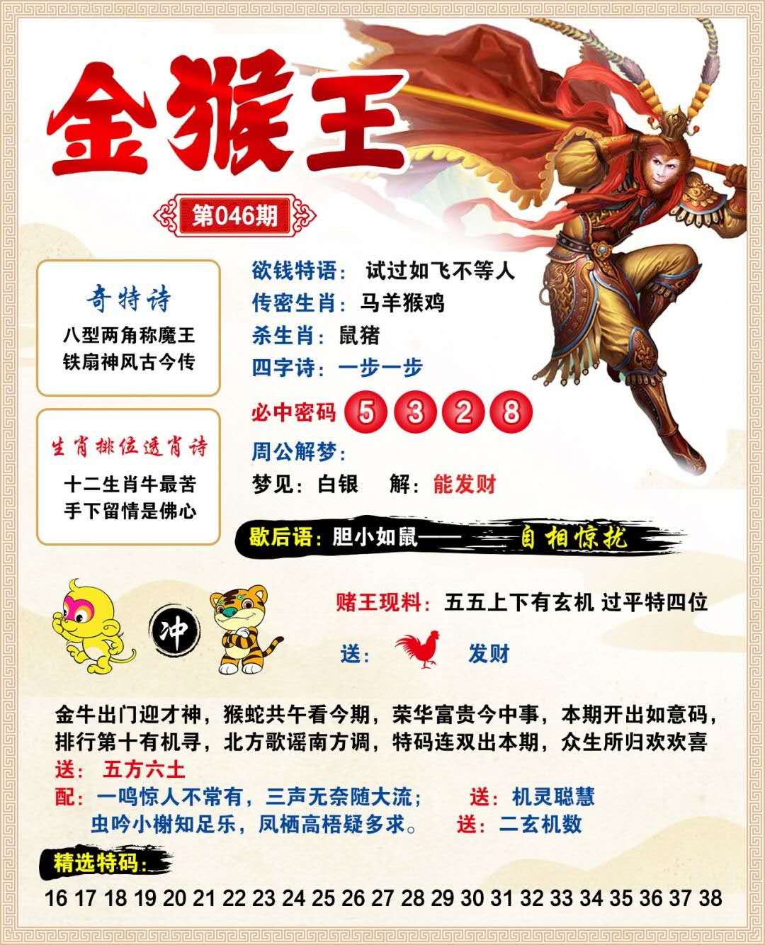 073期:【今期买鼠输尽光】 【看中3头4尾全不买】开: 猴 23
