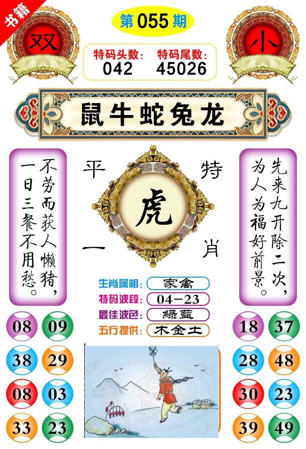 五福肖:鼠、虎、兔、蛇、猴[龙]