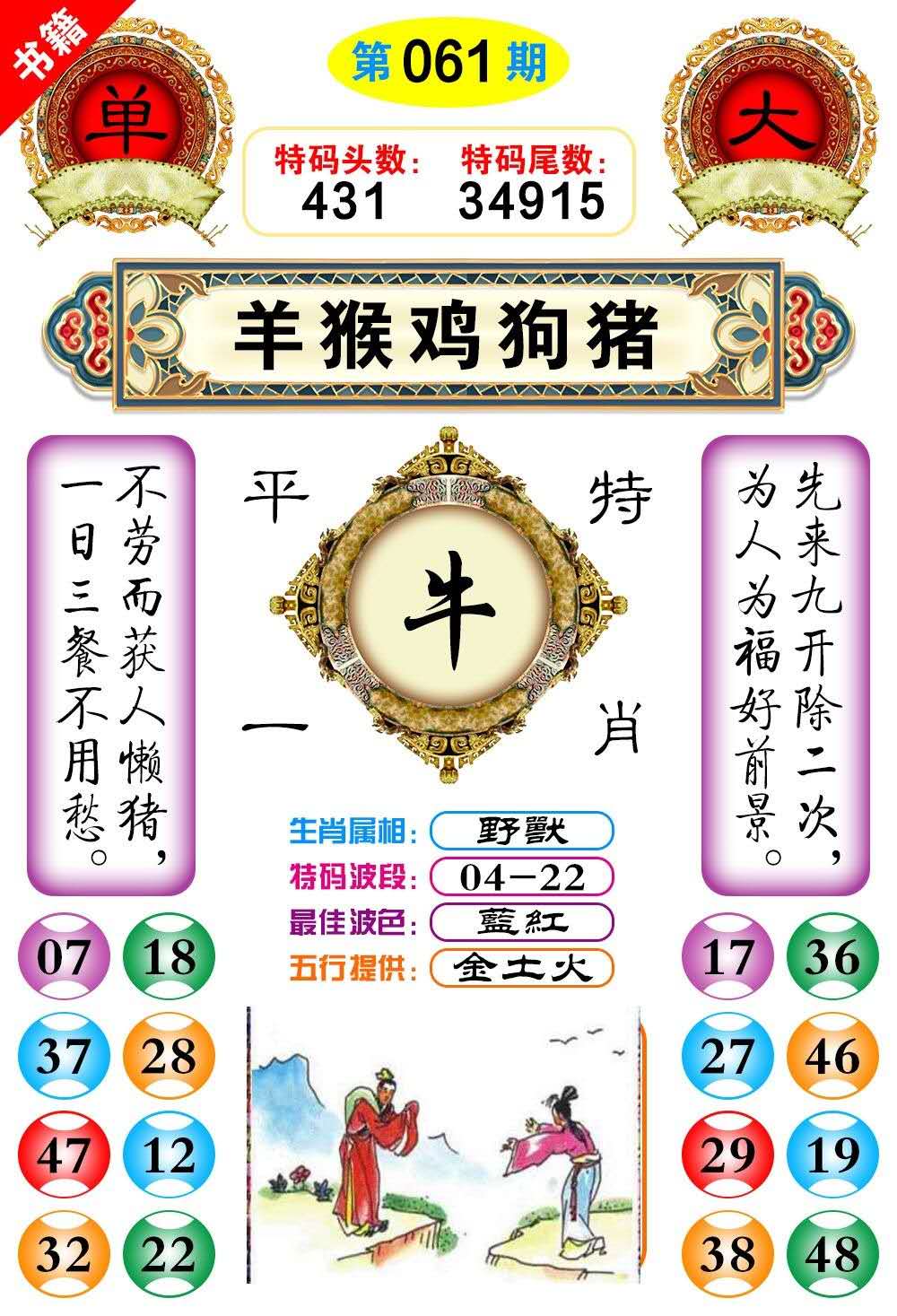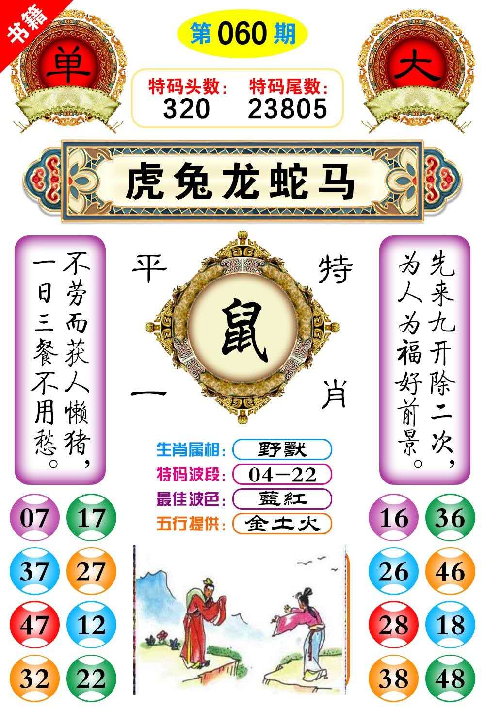 男肖:鼠、牛、虎、龙、马、猴、狗