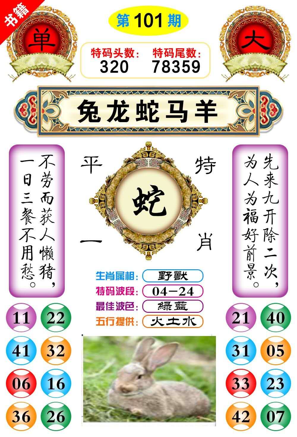 101期:【今期买兔输尽光】 【看中3头7尾全不买】开: 蛇 02